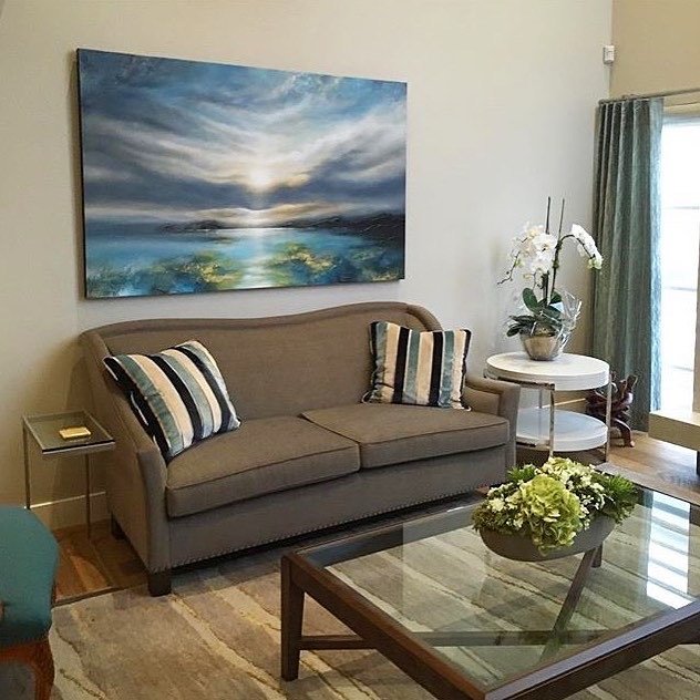 You have complete freedom over size and pallet. Linzy will perfectly colour match to your existing space and with our custom stretched canvas we can accommodate any size up to 20feet for a single canvas.
